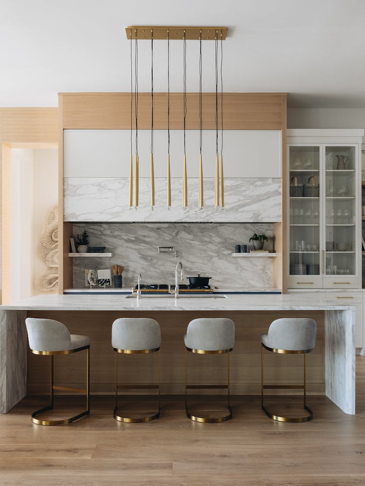 From stone to steel and wool to wood, natural materials create authentic, understated spaces. For a crowning touch, deftly chosen lighting acts as functional sculpture, topping clean-lined furniture with statement style.