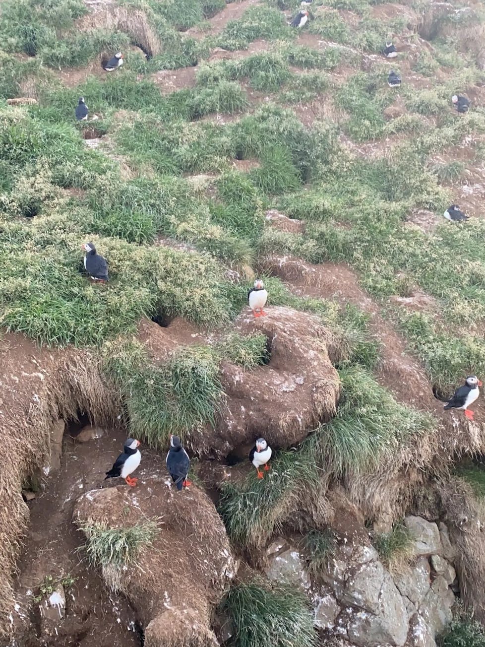 Puffin webcam live! We texted our peeps back home to log on at 6 pm Chicago time, then went out at 11 pm (since it’s still light out super late in summer). See signature dance moves and lots of waving here.