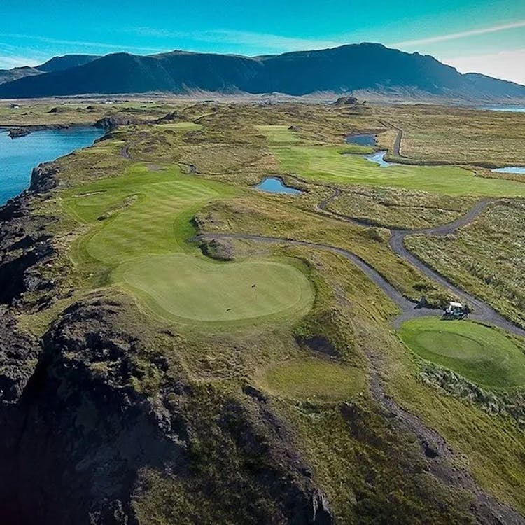 From Varmaland you can head to a Fjord on the West side to see more parks and attractions. We heard there was some cool stuff like Snaefellsnes, Krauma hot springs and Grabrok Crater, but we opted to head back to Reyjakiv because I had a li’l surprise in the works for my dad and Josh. Golfing on the coast at an unbelievably stunning oceanfront course (as a thank you for their patience with my hourrrrrs upon hourrrrrs of pre-planning and research). See? Totally pays off for everyone in some way. Occasionally in the form of a once-in-a-lifetime golf day.