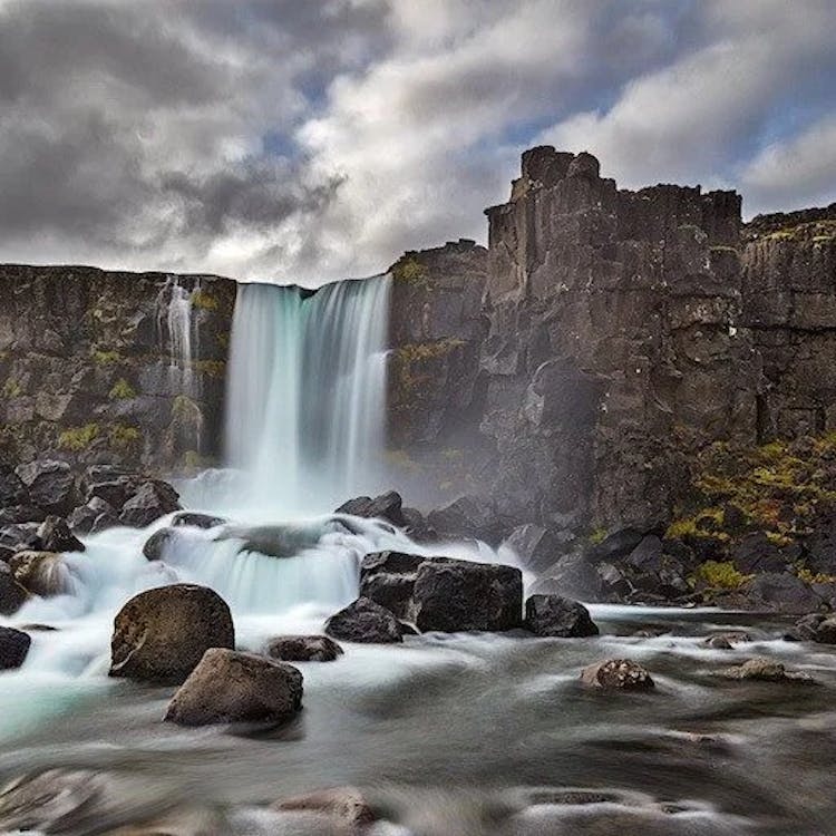 Þingvellir – I’m not a big “national park-er,” but this is not too far from downtown Reykjavik, and the front-desker at the hotel insisted we hit it up. SO glad we did (thanks, front desker!). Hiiiiiighly recommend. The first car park area leads you to a path with my kinda hike (5 minutes) to an astoundingly beautiful waterfall called Oxarafoss (above), that’s sort of hidden by a mountain. Do it! It’s breathtaking, private and unbelievably stunning. When you come down, head right, you’ll pass the bus parking lot and a public restroom that’s pretty nice as far as public restrooms go. Take the path up-up-up to see where the tectonic plates meet, creating the divide between what was Eurasia and North America. It’s a worthy stop, maybe a 15/20 min walk to the top. There’s a shop up there with coffee, water, souvies, etc., and on the way down you see things you didn’t notice on the way up.