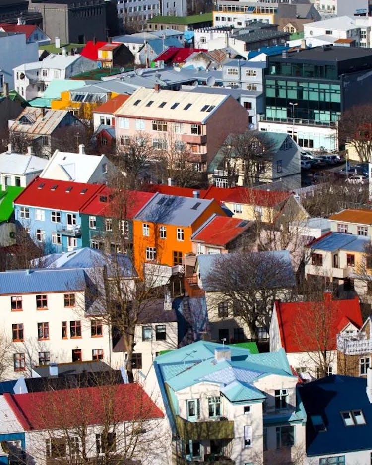 As we wandered around town, we noticed a Swedish and mid-century influence on a lot of buildings. Many of the homes are painted in bright vibrant colors, giving it a small town European feel. Most are clad in corrugated steel on the façade and roof. We came up with all kinds of hypotheses about why they would use that and how it would never fly in Chicago. After doing some digging, I found the use of corrugated metal in Iceland was a response to natural phenomenons like volcanos, floods, earthquakes and the like (also called disasters, but “phenomenons” sounds less, well, disastrous).