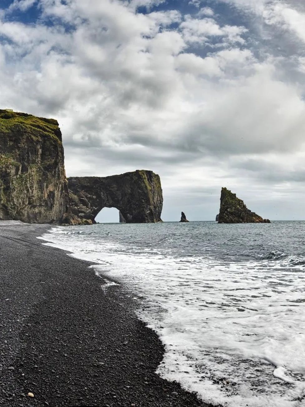 Have dinner and stay over in Vik. It’s a larger town and the locale for the show Katla (which is the volcano there). Head for the pretty church, an ideal perch for taking in the whole town. We scarfed down some great fish and chips here at a pub called Strondin, then walked to the Reynisfjara Black Sand Beach link. We enjoyed the beach (even in winter coats), but like the others, it was too cold and rough for swimming. Fuel up here on gas and food. Not many options before the next town stopover. We enjoyed the Hotel Vik I Myrdal. Breakfast included with rez, approx. $250 for a room. 2 Klettsvegur, Vik, 870, Iceland +354-487-1480 Directions here.
