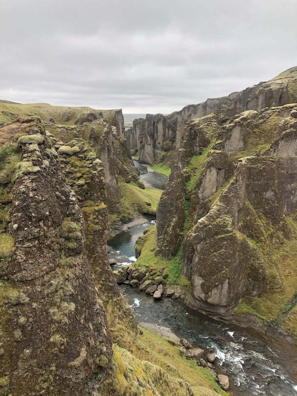 We started the day with a nice hotel breakfast, and then THIS. Whoaaaa. The panoramic views of the 100-meters-deep-and-somewhat-narrow canyon Fjaðrárgljúfur will leave even the talkiest talkers speechless. This is Ice Age history still kickin’ two million years later. The Fjadra river runs through it. You can’t walk the river unless you want to wade through it, but there is a nice path up and some cool lookout points. It takes about 15 minutes to get to the top, and then you can stay until you tire of the views (hours?), or until you have to bounce to get to your next stop on time (the more likely scenario).
