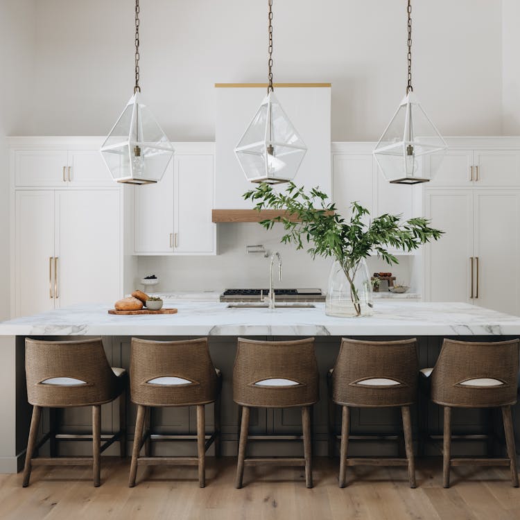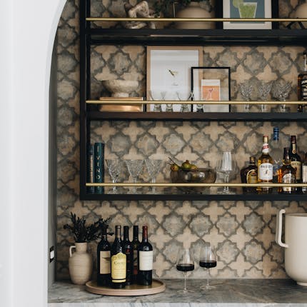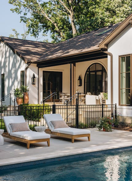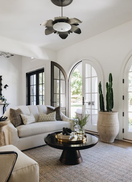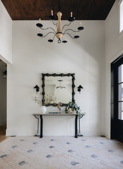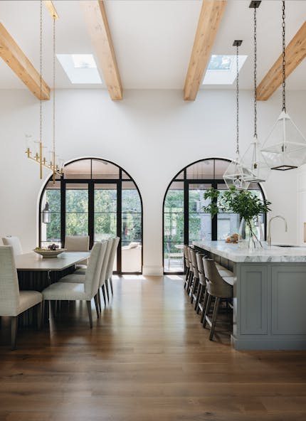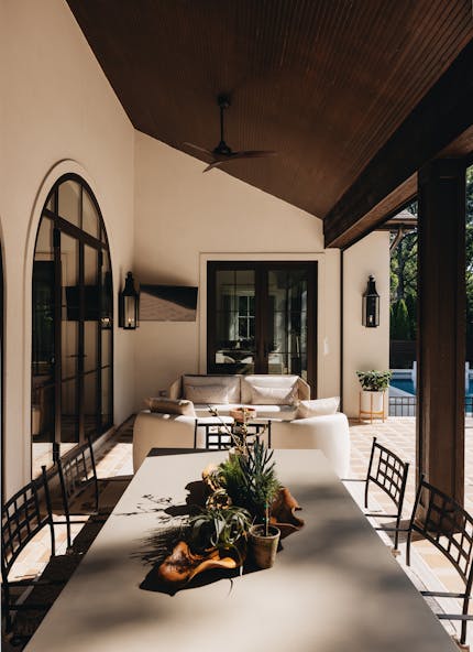 A Spanish Colonial, but modern. As the vision took shape in the architecture, we jumped on board to design an interior that blended the distinct exterior vibe with its suburban context.