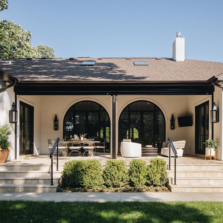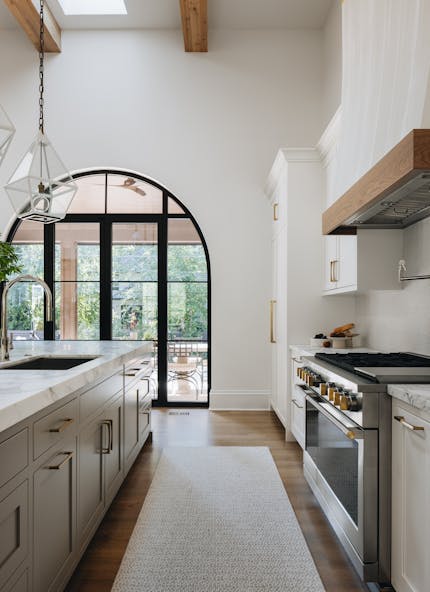 This double set of double doors visually and functionally open the kitchen space to the covered patio and outdoor space. Creating indoor-outdoor living is as simple as throwing doors open and lifting the screens.
