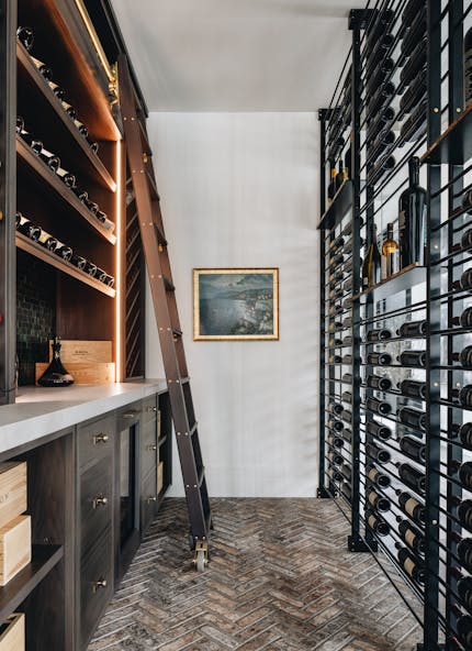 With a priority on entertaining, we integrated lots of functional essentials for hosting and created unique spaces to entertain. A fan favorite is the formal dining room complete with vaulted ceiling, custom-made dining table and temperature-controlled wine room that is truly the life of the party.