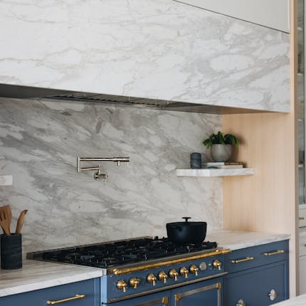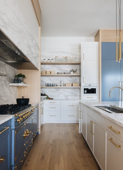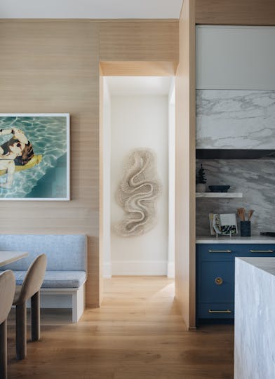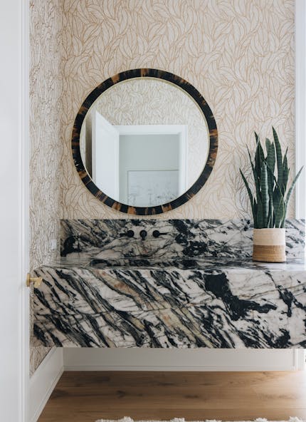 Warm neutrals, thoughtful color, and high-fashion finishes are each distributed in perfect proportion. This house is a mixed cocktail of styles and materials and we love how it all came together.